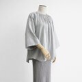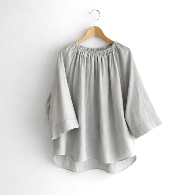 ギャザークルーネック 7分袖 ゆったりプルオーバー ブラウス|オーガニック綿100%ダブルガーゼ_Pale Gray