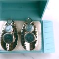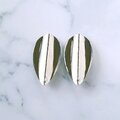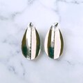 リーフ型のメタルの中央に色味の違うブルー系(1番上はグリーンっぽい色合いです)のエナメルで色付けされた大中小のラウンドがアーチ状にデザインされたヴィンテージピアスです。