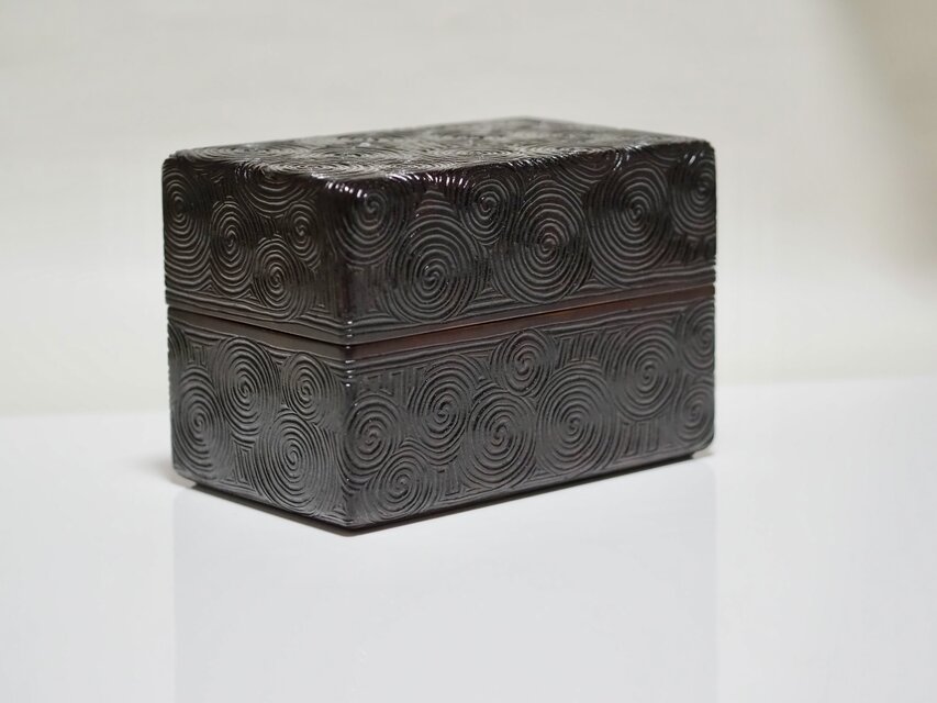 箱の外側には、六面全てに縄文紋様を彫り込んであります。