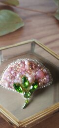 チェコビーズ、アクリルビジュー等を使い、ワイヤーで縁取りしましたキラキラ素敵なブローチになります。