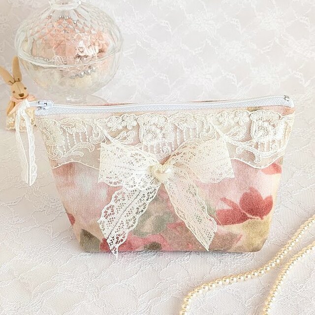 #化粧ポーチ #コスメポーチ #フェミニン #マチ付き #かわいい #上品 #エレガント #ロマンチックガーリー #リボン #レース