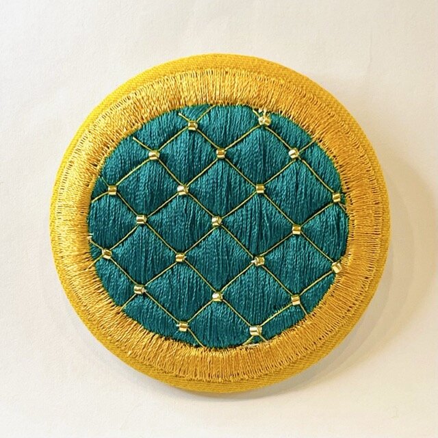 ミシンによる精密な機械刺繍と、手仕事の融合。