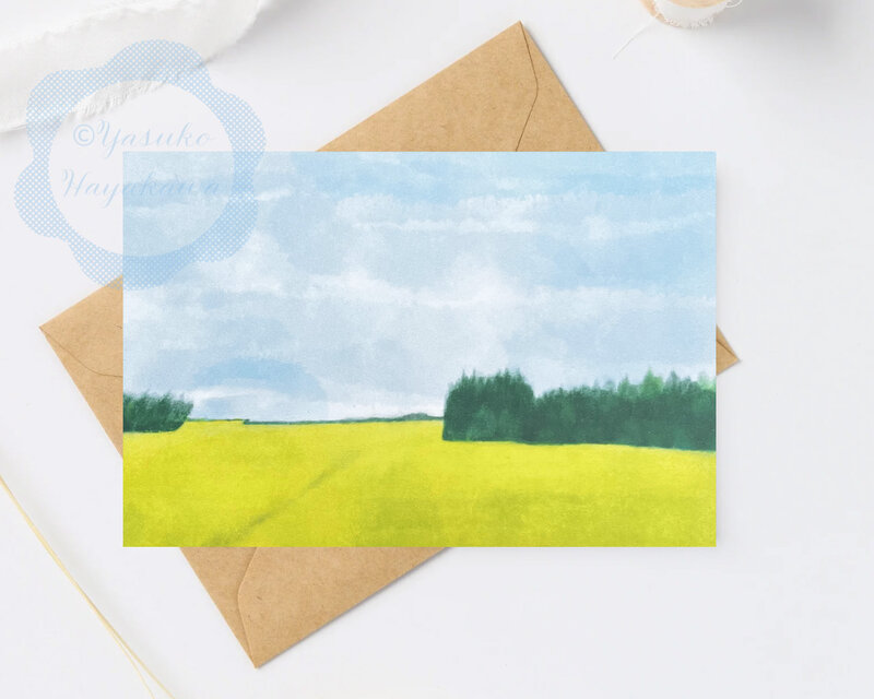 (104)黄色い花畑の風景 ポストカード 3枚セット