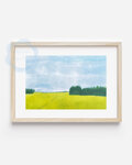 どこまでも続く黄色い花畑の風景を水彩タッチで描きました。