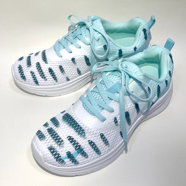 ミントグラデーション雨柄スニーカー|軽量・通気性◎ デイリー仕様|ホワイトスニーカー