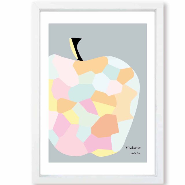 アプルをやさしい色彩のフォルムにしたおしゃれインテリアポスター。