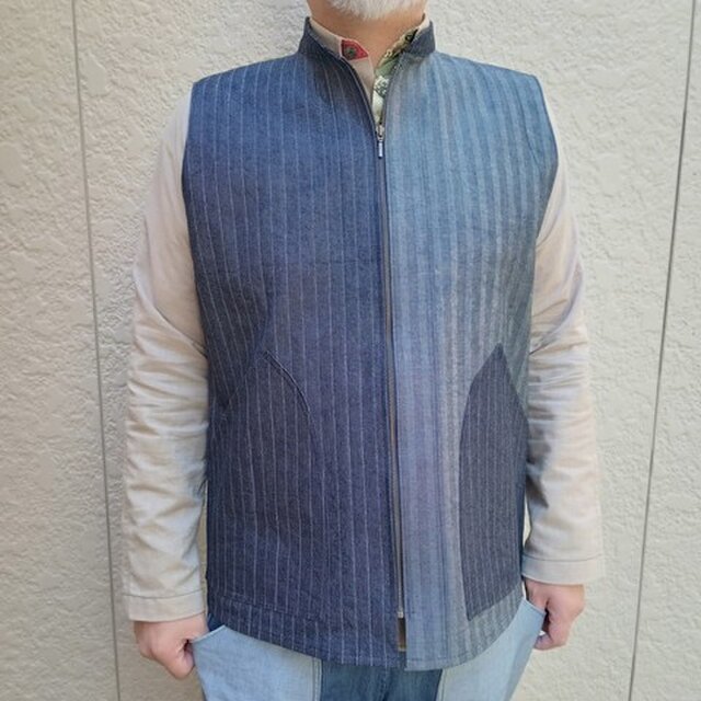 岡山県井原市産デニムベスト(ウォバッシュストライプ×ヘリンボーン)
