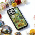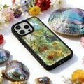 このケースは天然の貝殻を使って作られています。貝殻は海のエッセンスそのもので、樹脂のカバーの下ではまるで魔法のように輝きます。貝殻のきらめきは、角度や時間、照明によってさまざまに変化するんです。まるで自然がいつもそばにいるような感覚を味わえます。