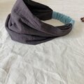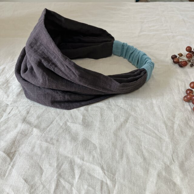 ふわふわスラブダブルガーゼのヘアバンド ダークブラウン×スモークミント ヘアターバン