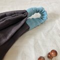 たっぷり幅広でお仕立てしておりますので、お好みでギャザーを多くとってみたり、幅を広げて三角巾やバブーシュのようにつけいただいたり、コーディネートのバリエーションを楽しんでいただけます。