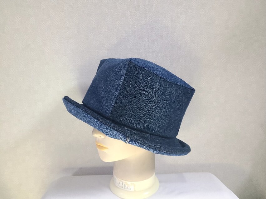 ブリムは芯を柔らかめに張ってあるので、部分的或いは全体を折り上げると雰囲気の違う被り方ができます♪