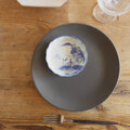 淡い染付で描かれた山水と、やわらかな輪花形。