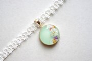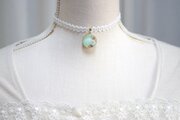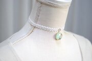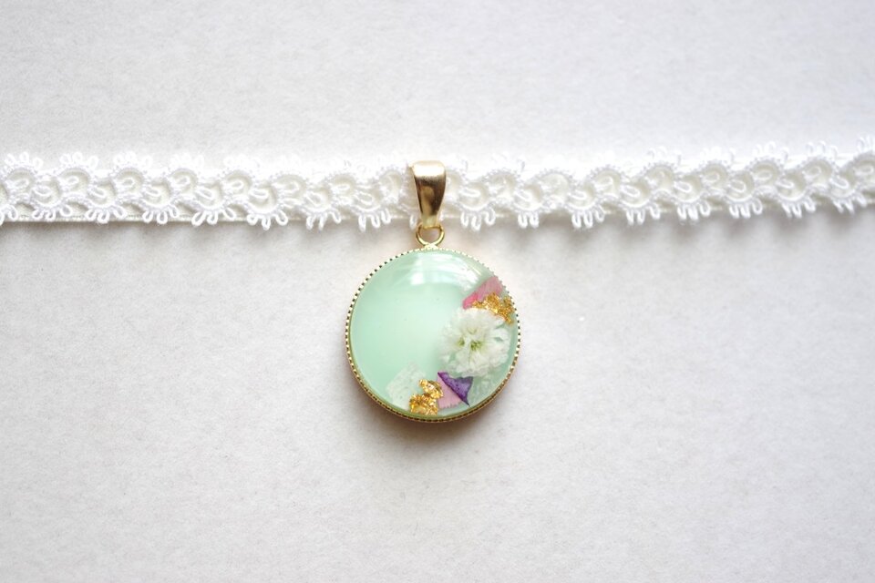 【受注製作】レジンアート ラウンドモチーフとタティングレースとサテンリボンのチョーカー〈ブーケ・グリーン〉