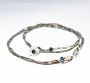 フランスアンティークカットメタルビーズとハーキマーダイヤモンド、インディゴブルービーズを繋いだ2連ネックレス です。