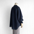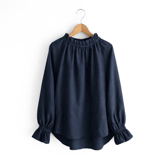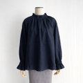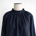 フリルカラー キャンディースリーブ 長袖プルオーバー ブラウス|リネン100%_Navy