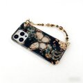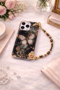 こちらは、[フラワー / ハート / ドット / ジオメトリック / 猫モチーフ / イラスト]など、印象の異なるデザインに、手首に通して使えるビーズハンドストラップを組み合わせたiPhoneケースです。