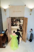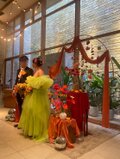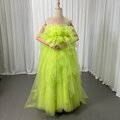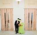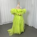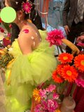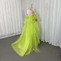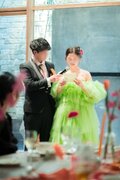 実例写真!カラードレス ミントグリーン 取り外し袖 ラッフルフリル ミニトレーン ソフトチュール 花嫁