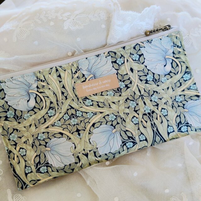 モリスの代表作の1つ人気のピンパネルの仕切り付ポーチです。