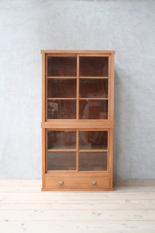 2段のガラスケース 古家具/アンティーク/ガラスケース//収納/ガラス棚/茶箪笥/水屋