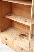 古家具や古家具の風合いを活かす為、素材に合わせ塗装を施し、汚れや輪染みを起こしにくいよう配慮しております。ウレタン等の樹脂塗装とは異なり、水分が付着したままの状態が続くと染みになる可能性がございますので、取り扱いにはご注意ください。