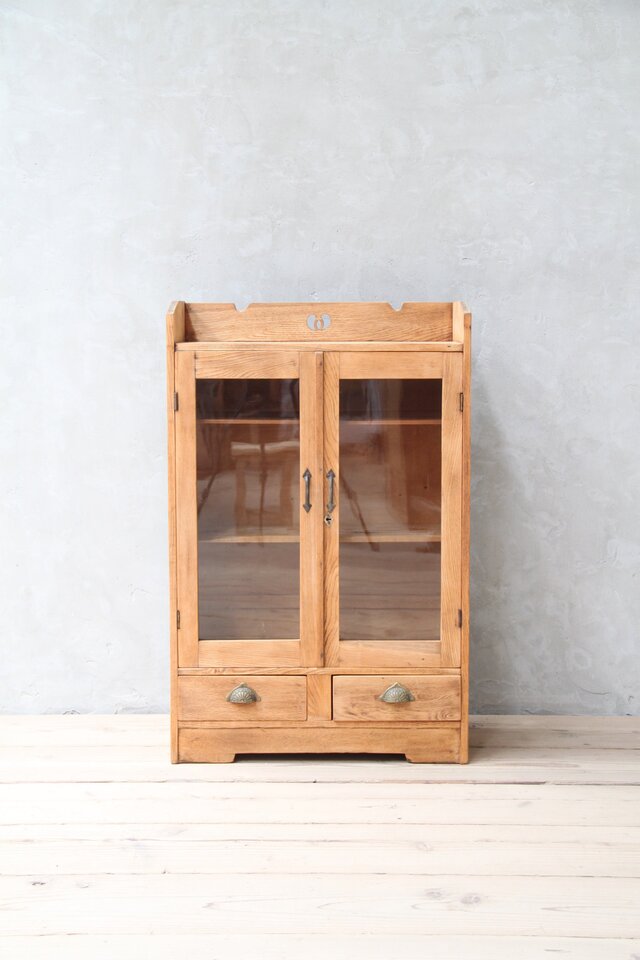 ゆらゆらガラスのガラスケース 古家具/アンティーク/ガラスケース/収納/ガラス棚/本箱/ダイアガラス