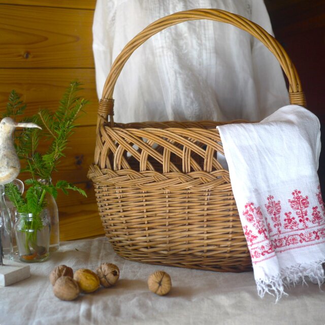 透かし編み柳バスケット ワンハンドル ドイツ