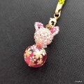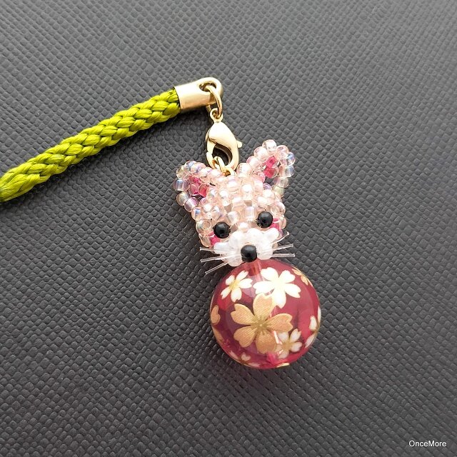 赤みのあるピンク、半透明のビーズには大小2色の桜が転写されています。
