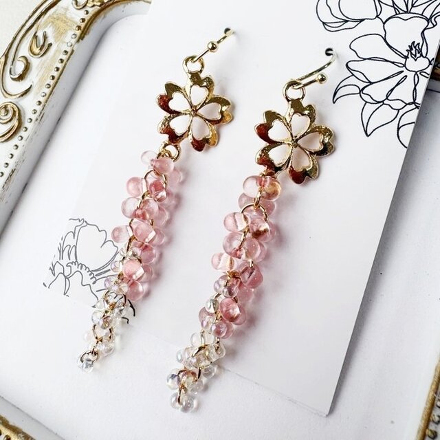 卒業式や入学式にも、揺れるロングピアスはおススメです。