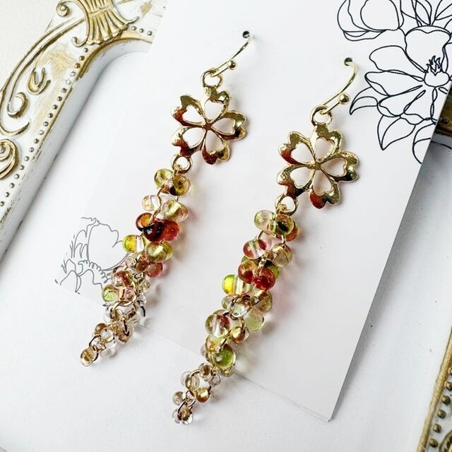 ゆらゆら揺れるロングピアスを作製しました。