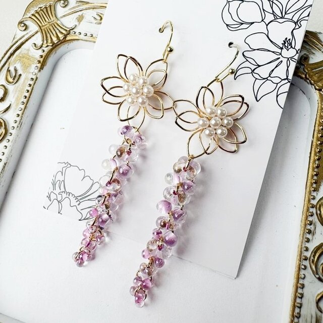 パールのついたお花&揺れるロングピアスはおススメです。