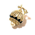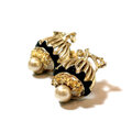 Coro Black Enamel Floral Pearl Vintage Earrings