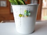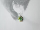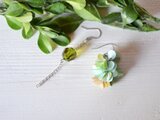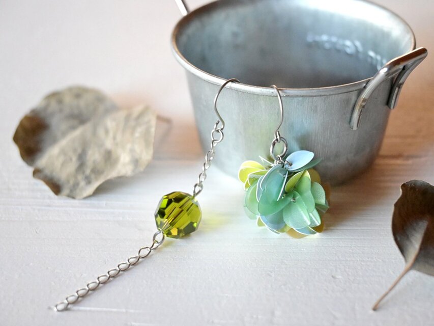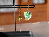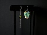 やさしいグリーンの色合いが印象的な、アシンメトリーピアスです。