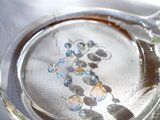 ガラスの中に閉じ込められたような淡い色彩は、まるで水面や空のきらめきを思わせるような印象に。