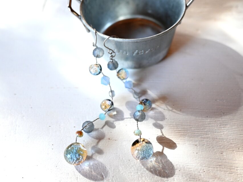 やわらかな光と色の重なりを楽しめる、ロングピアスです。