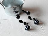 ブラックをベースに、ドット柄やストライプ模様など表情の異なるビーズを組み合わせ、シンプルながらも存在感のあるデザインに仕上げました。