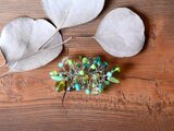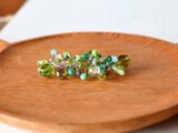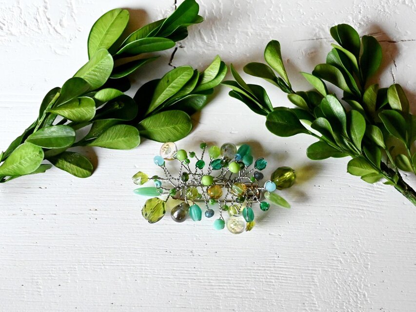 グリーンを基調に、ブルーをアクセントに散りばめたビーズが、まるで小さな花束のようにやさしくきらめきます。