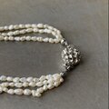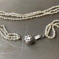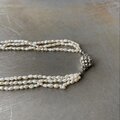 繊細な淡水パールが魅力的なヴィンテージネックレス。ほどよい存在感の3連タイプでラフな形のパールがお洒落な雰囲気。パーティーシーンからカジュアルなスタイルまで幅広く合わせていただけます。