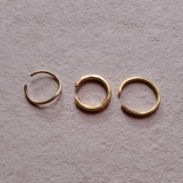 真鍮の槌目をつけたシンプルなイヤーカフの3点セットです。