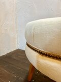 和紙ベルベットの軽やかさに、スエード帯と連結鋲のアクセントを加え、清楚な装飾家具に仕上げました。