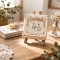 【母の日ギフト】リボン柄ディスプレイパネル×選べる犬猫モチーフピアス/イヤリングセット《おしゃれに飾れるアクセサリー》
