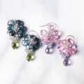 「ピンクの花雫」ピアス イヤリング 天然石 ピンクトパーズ ミスティックタンザナイト シルバー925 樹脂 ノンホール