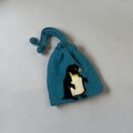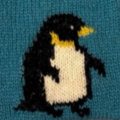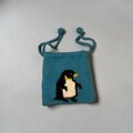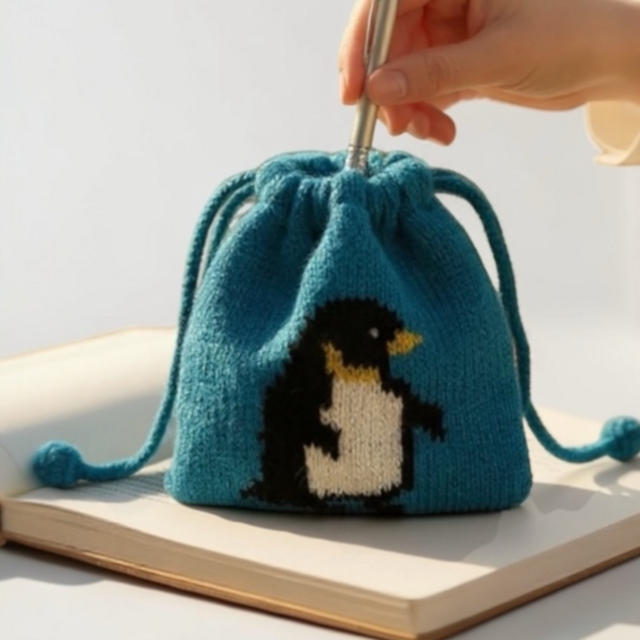 シェットランドウール100%の毛糸でペンギンを編み込んだ巾着です。