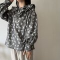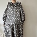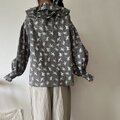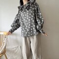 繊細な線画で表現されたデザインは、リトアニアの澄んだ空気を感じさせるような、静かな詩情を湛えています。ナチュラルなリネンの表情と重なり、奥行きのある一着となりました。