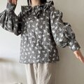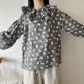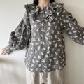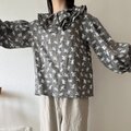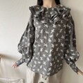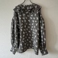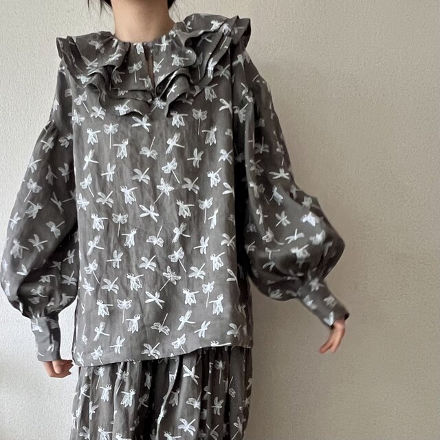 顔まわりを華やかに彩る3段のフリル衿が印象的なブラウスです。