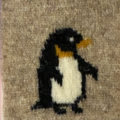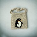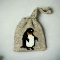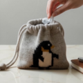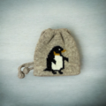 シェットランドウール100%の毛糸でペンギンを編み込んだ巾着です。