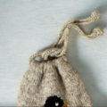 ペンギンの手編み巾着グレーS/シェットランドウール