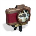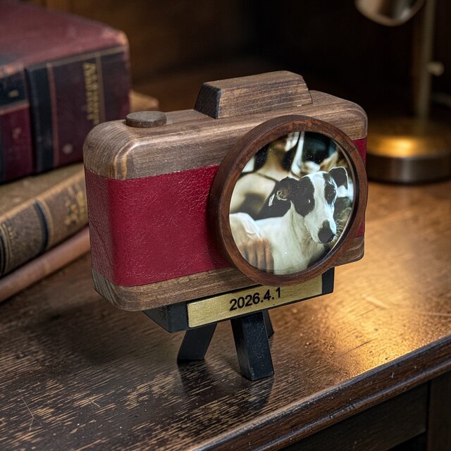 母の日の贈り物に、遊び心あふれるカメラ型の木製フォトフレームはいかがでしょうか。