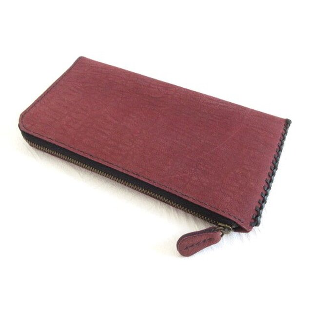 通帳もスリムに入る♪《牛革》L字ファスナーロングウォレット・マッドワイン・ドライシュリンク022