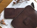 ・使用している革はスクラッチレザーと言って、表面にわざと擦りキズを施し起毛させた革になります。色の濃淡も目で見て楽しめる他、手触りもザラついた感じではなくマットでしっとりとした風合いです。オイルがたっぷり含まれた革になりますので、使っていくうちに色・艶など革の風合いが変化していきます。