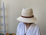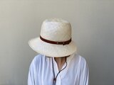 木型でできた中折れ夏物ハットユニークな形ですが、とっても可愛いです。また、作りがしっかりしているけどとても軽くて、今年の猛暑でも蒸れずにかぶっていられます。とっても気に入って毎週末使わせていただいてます。ありがとうございました。